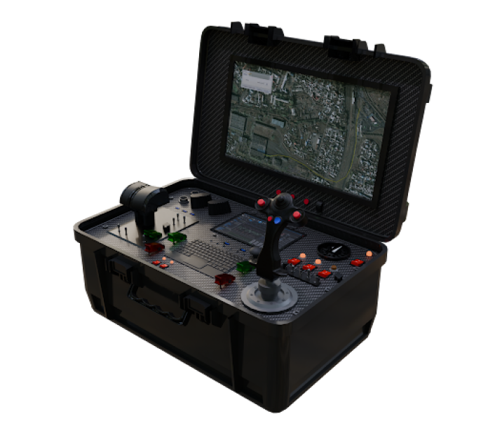 Управление 8 каналами через кнопки, тумблеры и джойстики, сенсорный экран по размерам заказчика (базовая модель 12 дюймов), собственное ПО планирования и контроля полёта, возможность прошивки без ПК.